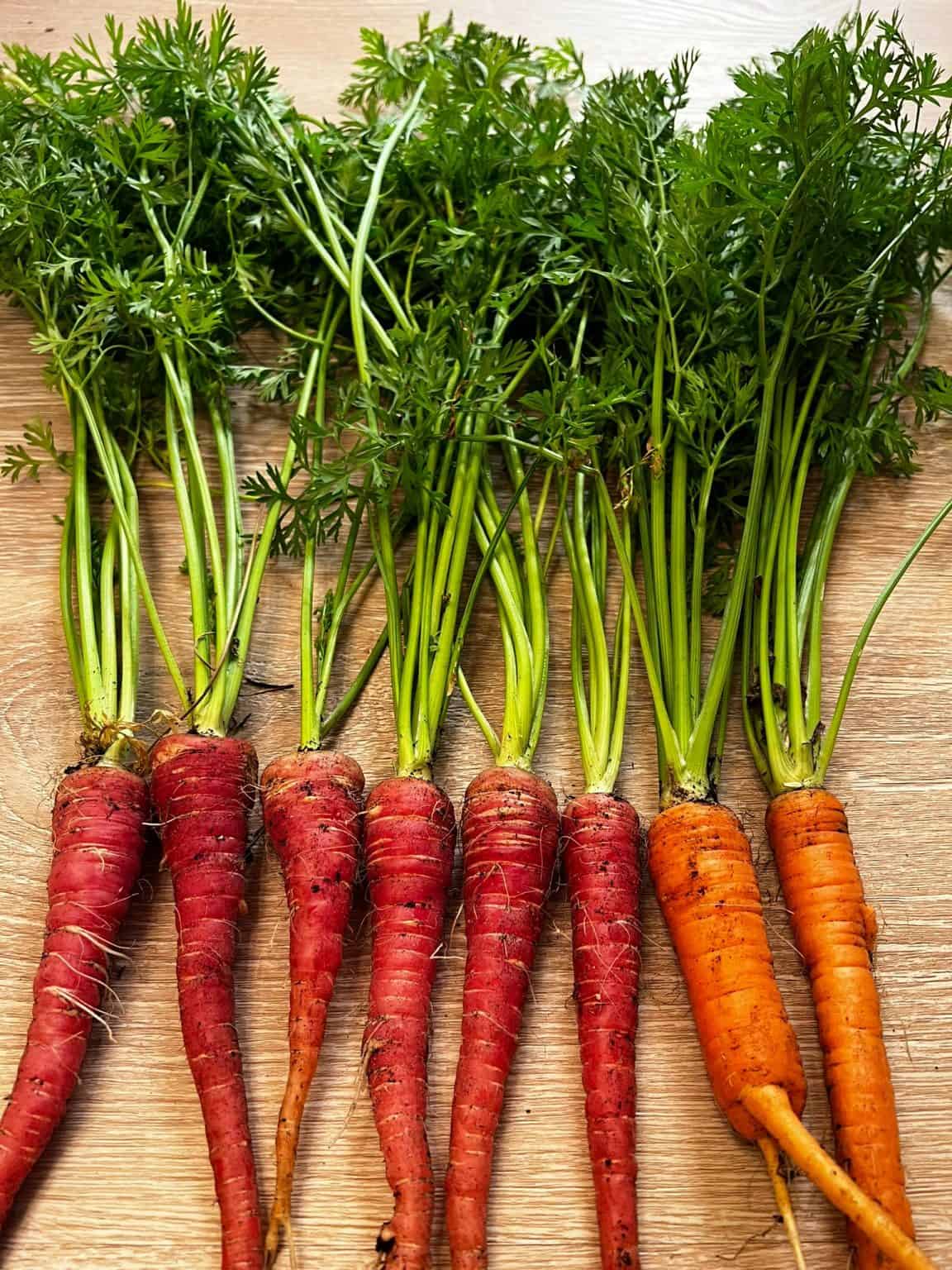 Let’s talk about my favorite crop to grow, carrots! Carrots are one of the most versatile’s crops and can be used in so many different ways! I joke with friends saying that I should change my name to “carrot guide” instead of “raised bed guide” as I have great success with growing them while many people struggle. When it comes to caring, it is not a complicated crop to grow, but it does require some tricks in order to grow big ones!