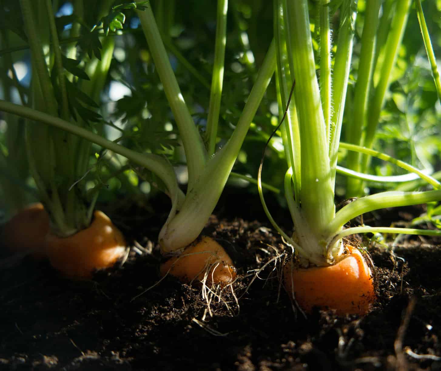 Most vegetables need the 6-8 hours of direct sunlight window to grow, leafy greens are the few ones that can get away with less. If not enough sunlight reaches the site, the carrots will tend to grow bigger leaves to increase photosynthesis and smaller roots (which is the part of the carrot that we eat), and we don’t want that.