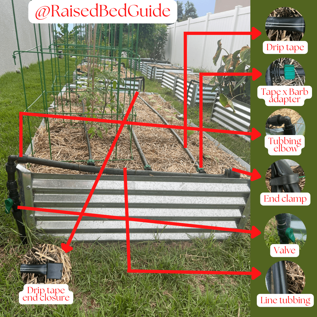 This is the main line that the water will flow through to make your raised beds. https://www.dripdepot.com/product/irritec-five-eigths-inch-drip-tape-end-closure