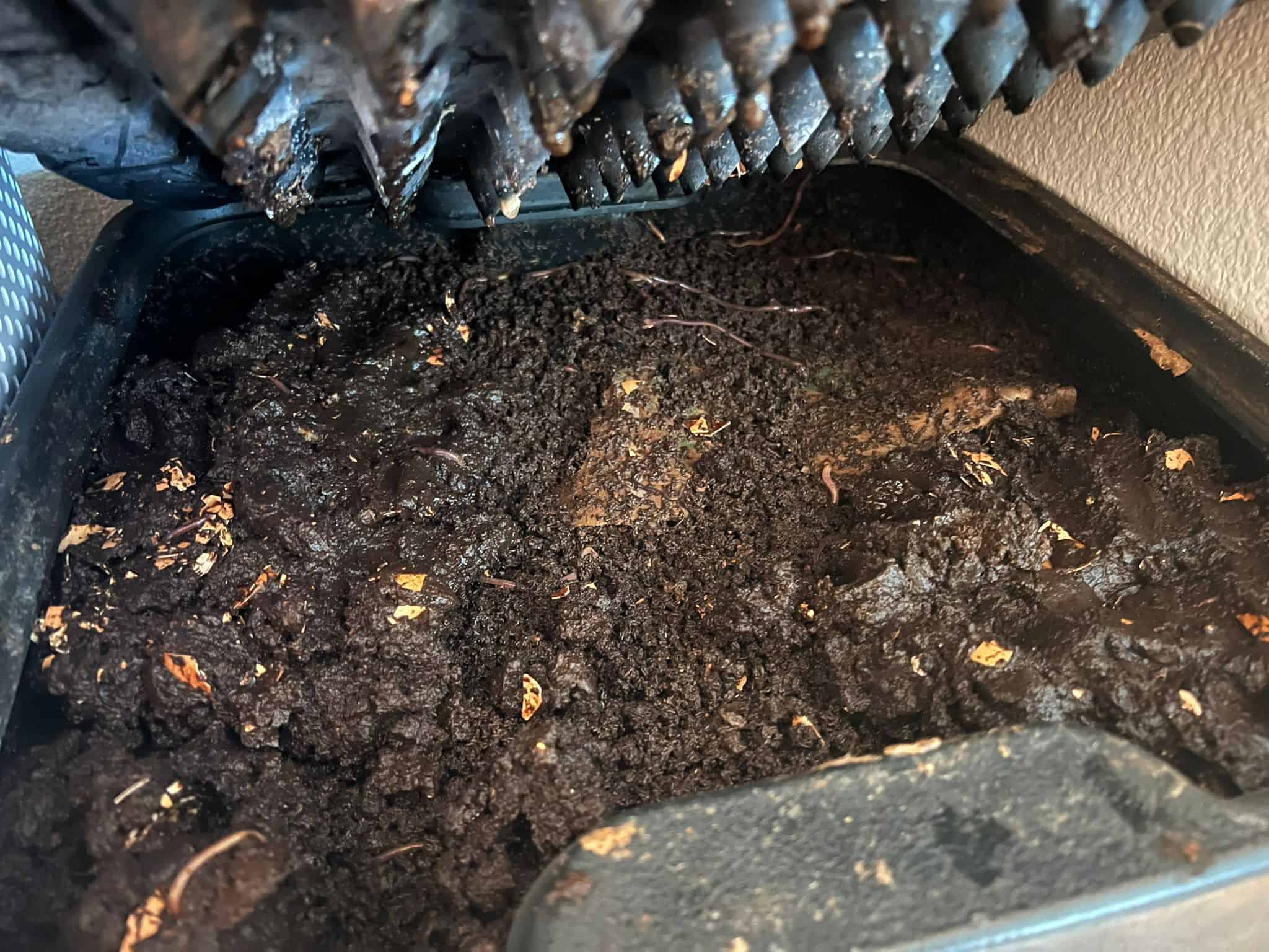 Ready to use worm casting on the bottom of my worm bin.